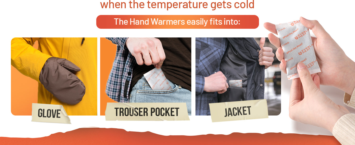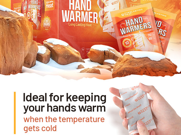 - LONG-LASTING HEAT - These hot hands hand warmers provide up to 10 hours of continuous warmth, perfect for outdoor activities in chilly weather. Keep a body warmer in your gloves or pockets for steady, soothing heat in the cold.