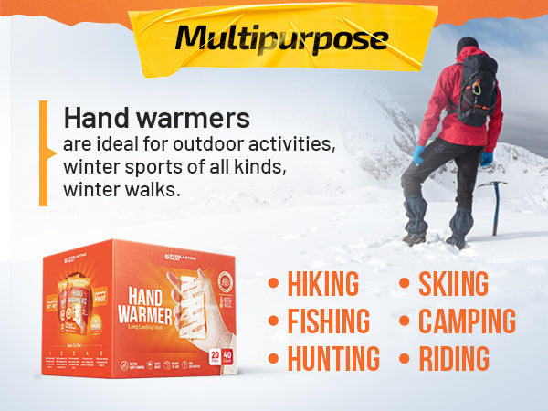 - VERSATILITY - This handwarmers bulk pack provides reliable warmth for hands, body, and feet, ideal for winter sports, outdoor work, and emergencies. Perfect as hand and foot warmers, body warmers for cold weather, or even as disposable hand warmers for football .