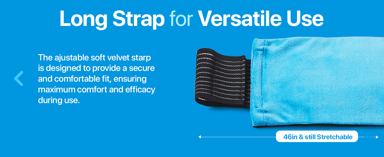 - Long Strap for Versatile Use: With a 26-inch long strap, these reusable ice packs are ideal for any body part. The soft velvet strap is adjustable and provides a comfortable fit, ensuring the ice pack stays in place during use.
